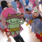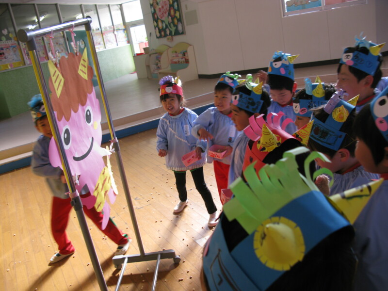 姿が見えると力強く豆を投げます🌀🌀🌀泣き虫鬼やイヤイヤ鬼、いじわる鬼など悪い鬼はすっかり外に逃げて行ってしまったようです💡